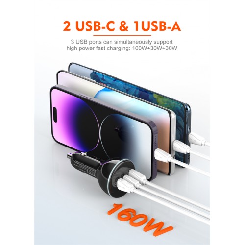 شاحن سيارة فائق السرعة 160 واط - موديل C102